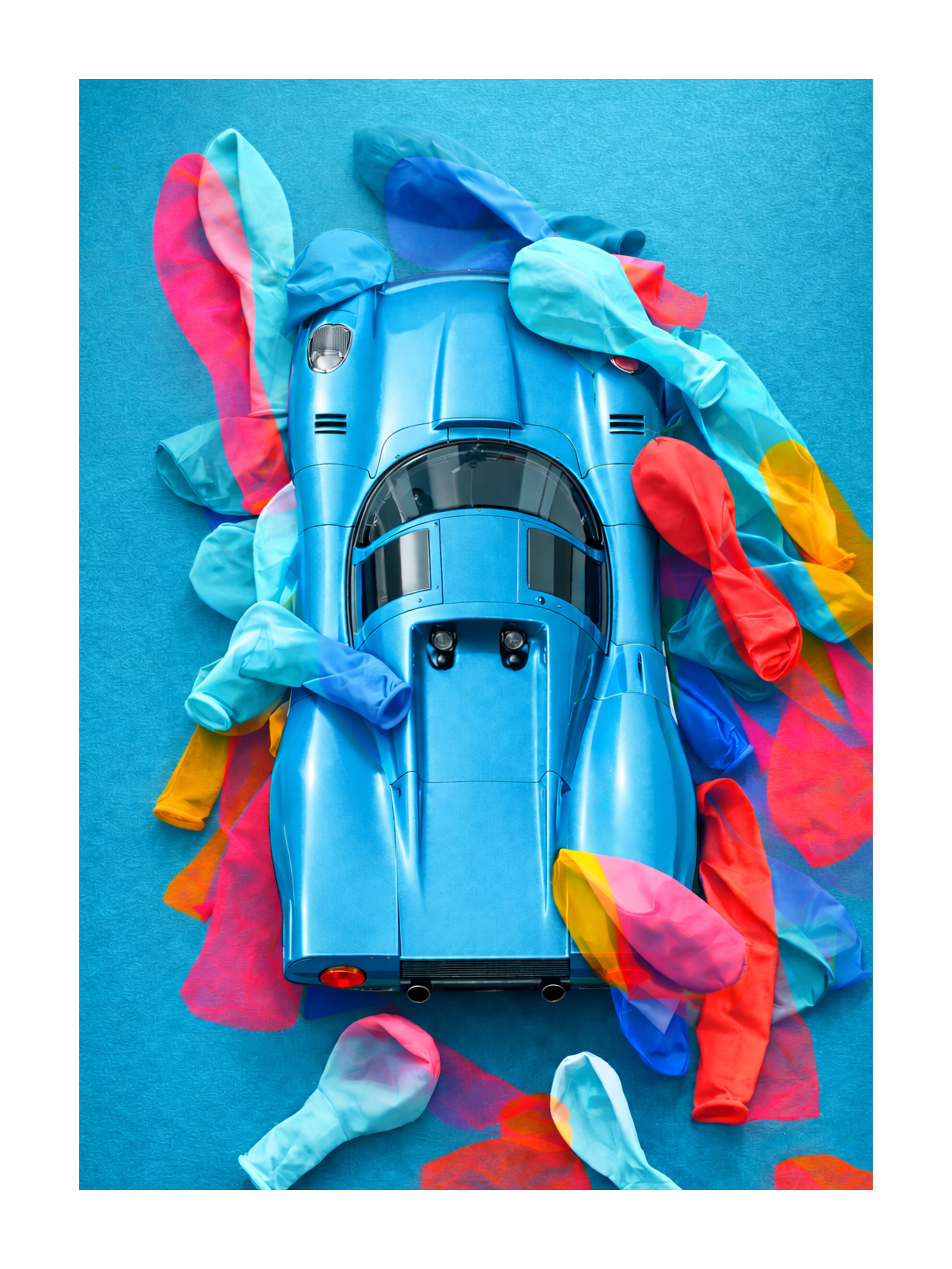 For the background, I photographed elongated water bombs on colored photo cardboard.